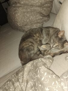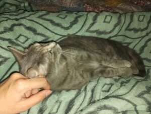 Sie hat anfangs ihre Grenzen gezeigt und mittlerweile ist sie da ganz entspannt – und ich konnte schnell ihre Grenzen lesen. Eine Schmusekatze wird sie nicht (das hätte ich auch nicht erwartet), aber sie fordert doch immer mehr Streicheleinheiten und liegt gerne bei einem – was natürlich eine tolle Entwicklung in der kurzen Zeit ist.