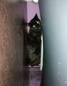 Nach einer guten Woche durfte sie raus und suchte sich direkt im anderen Zimmer unter dem Dach ein 2. Versteck, so dass sie sich niemals mehr als 1 Sekunde mit mir im Raum aufhalten musste.