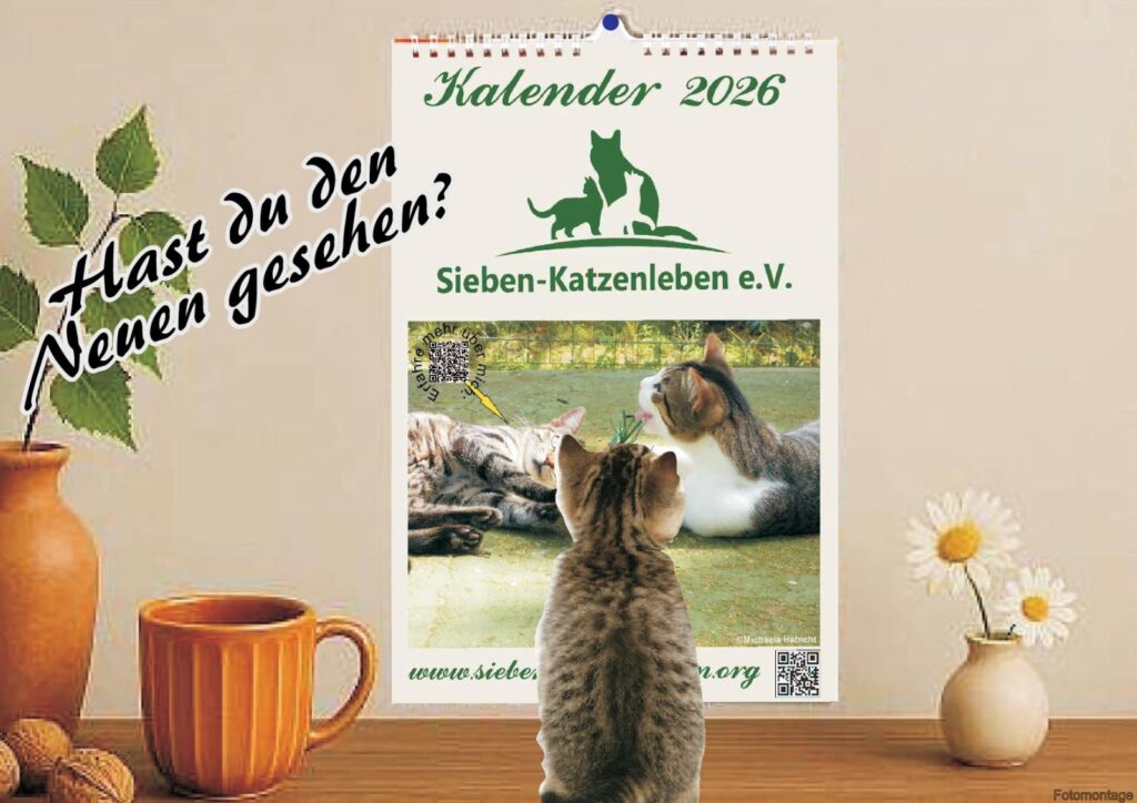 Vielen Dank an die Familien, die mit unseren Fotografen zusammengearbeitet haben und ihre Katzen als Models zur Verfügung gestellt haben. Wir danken dazu herzlichst Fotokatz Fotografie – Kristin Hofmann 📸🐈⬛, Cassandra Münick (https://www.pfotografie-muenick.com/) sowie Tanja Buchmühlen( https://www.tanidareal.com/) für die Genehmigung der Nutzung der Bilder für den Sieben-Katzenleben e.V. Kalender 2026 und der tollen Zusammenarbeit.