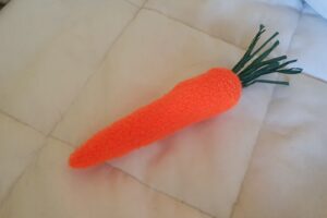Handgenähte Karotte, mit Karottengrün 35 cm groß, wahlweise pur, mit Katzenminze, Baldrian, Lavendel, Rosmarin oder Glöckchen