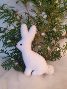 Handgenähte Schneehasen, ca. 13 cm groß, wahlweise pur, mit Katzenminze, Baldrian, Lavendel, Rosmarin, Glöckchen oder Raschelfolie