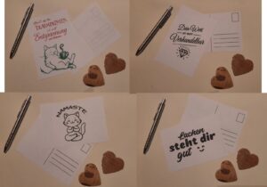Papierdicke 250g/m2, mit folgenden Sprüchen: